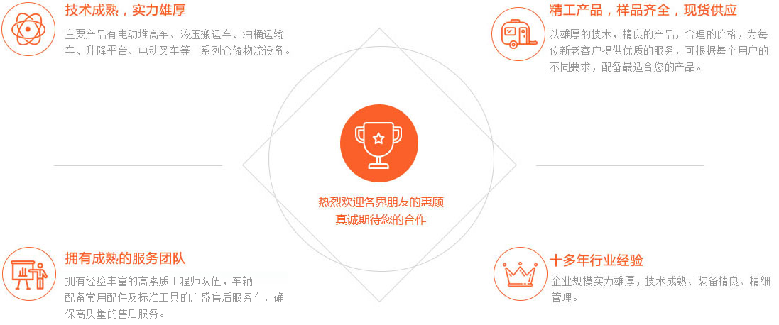 022-26999386天津市廣盛搬運機械有限公司成立于2003年,是在國內倉儲搬運設備具有一定地位的專業生產制造服務商。主要產品有:電動堆高車、液壓搬運車、油桶運輸車、升降平臺車、電動叉車等一系列倉儲物流設備。十幾年來,我們一直致力于吸收、引進世界物流產品與技術,堅持不懈,創新發展,為國內外客戶提供安全、可靠、省力、高效、專用的各類物流搬運產品。